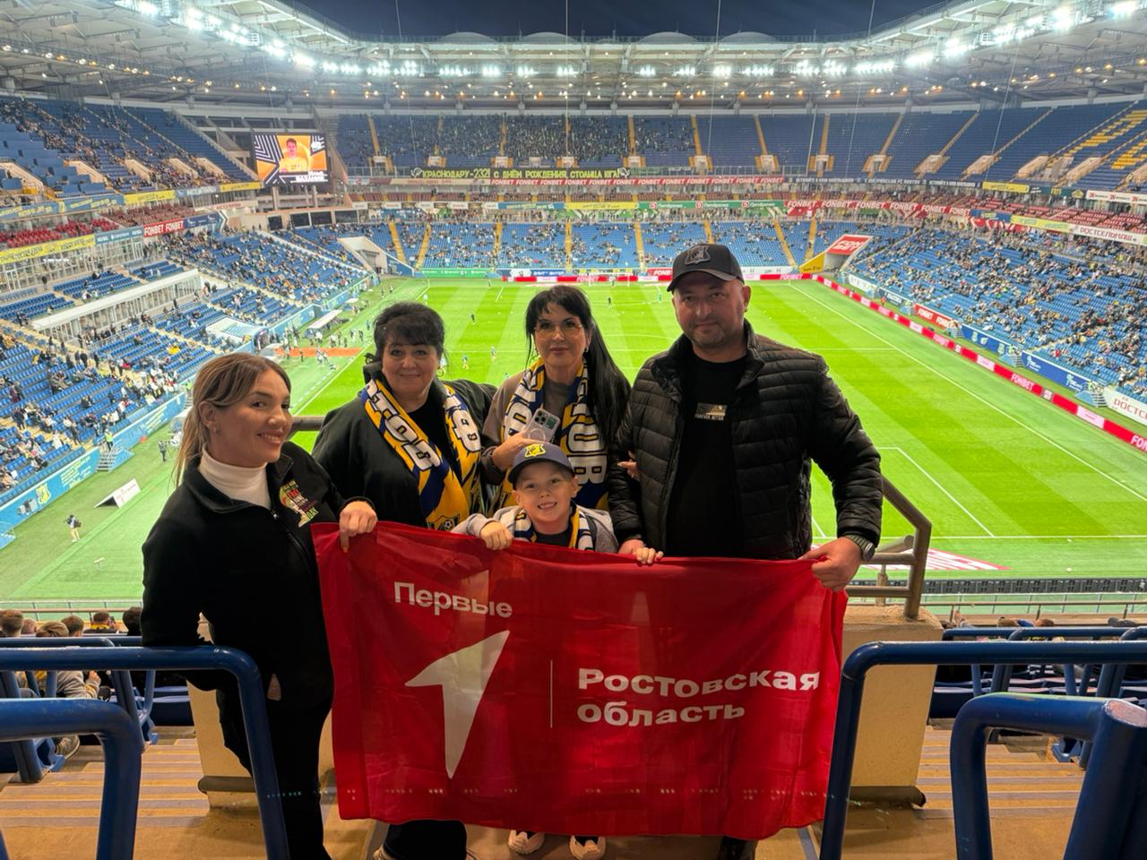 Семья Кабановых, представители нашего Первичного Отделения, в субботу посетила захватывающий футбольный матч чемпионата между командами "Ростов" и "Краснодар". По словам участников, атмосфера на стадионе была поистине шикарной, а возможность провести время вместе, поддерживая своих, принесла массу положительных эмоций.