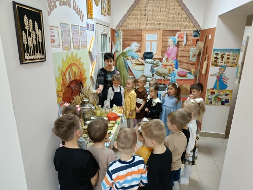 В ходе посещения мини-музея Донского казачества воспитатель Алёна Сергеевна Лесихина рассказала ребятам о том, как казаки варили кашу, что с помощью ухвата (также известного как рогач или вилка) доставали горячий чугунок из печи.
