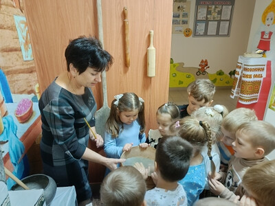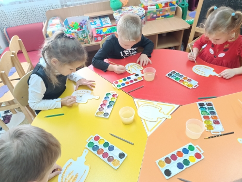 В рамках реализации проекта "Народные промыслы. Семикаракорская роспись" в старшей группе детского сада было проведено занятие по рисованию на тему "Колосок". Перед рисованием воспитателем Галиной Борисовной Кравцовой была проведена предварительная работа с детьми по познавательному развитию "Хлеб-всему голова", из которой малыши узнали о долгом пути хлеба от поля до стола, научились бережно к нему относиться, уважать труд взрослых. Ребята посетили мини-музей хлеба, узнали о разнообразии муки, макаронных и хлебобулочных изделий, об их пользе для организма человека. На занятии по рисованию малыши украсили досточки колосками с элементами семикаракорской росписи.