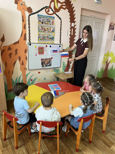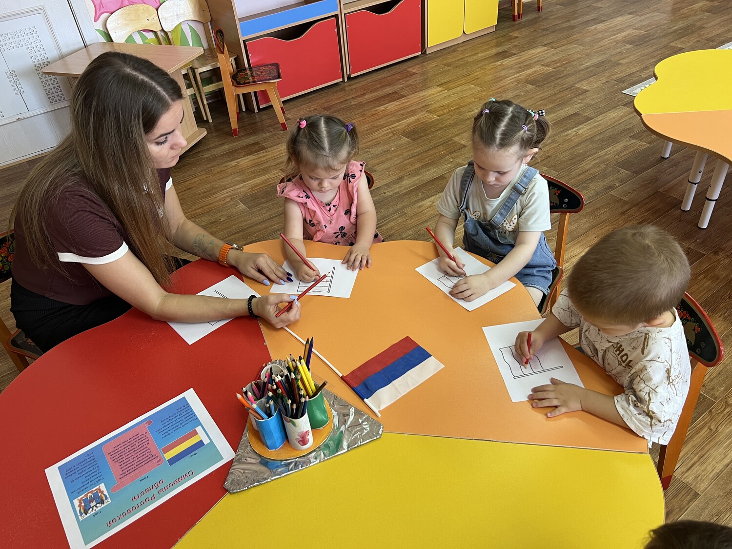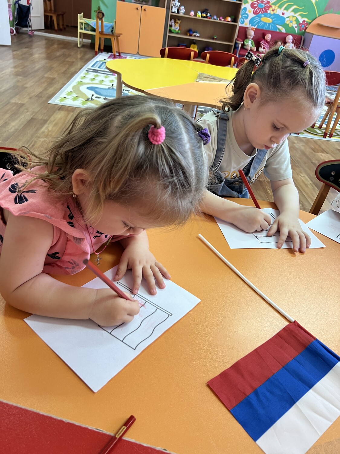В преддверии этого праздника, с воспитанниками первой младшей группы было проведено занятие, целью которого стало формирование знаний детей о празднике, расширение представлений о родном крае, развитие любознательности, а также привитие любви к Родине и культуре России. В ходе занятия дети познакомились с флагом России, рассмотрели символы Ростовской области. В завершении малыши выполнили творческие работы.