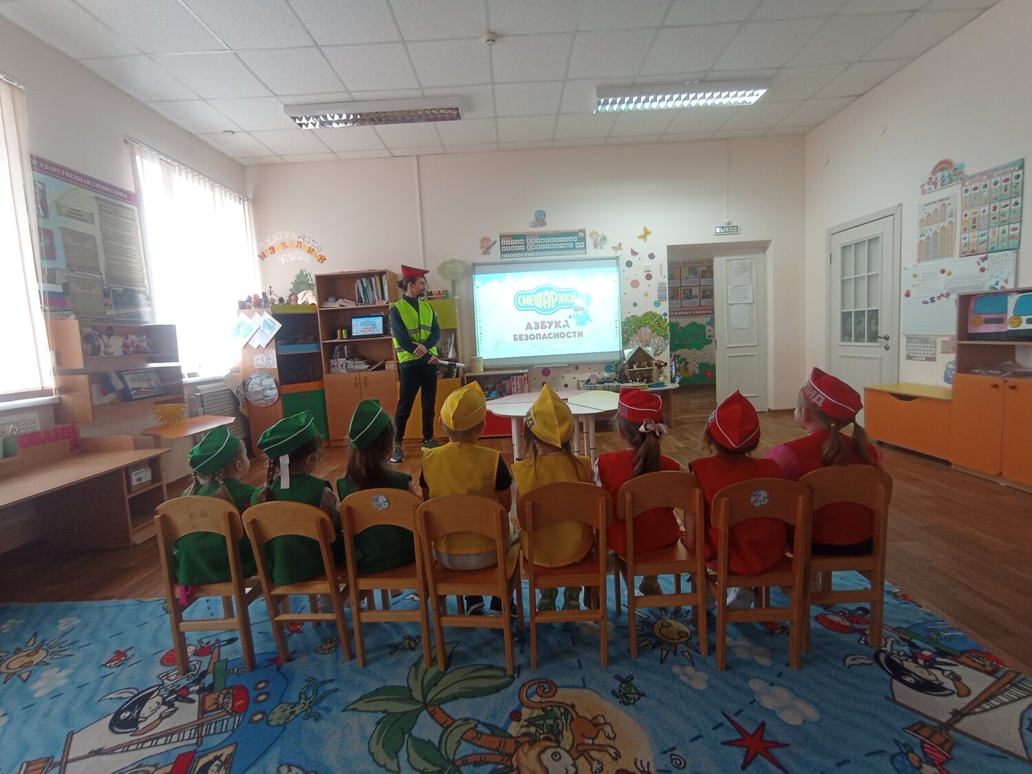 Вместе с нашей командой ЮПИД "Друзья дорог" мы вспомнили цели и задачи этой важной организации, освежили знания главных правил дорожного движения со Смешариками, а началось мероприятие с прослушивания гимна ЮИД. Дошкольники приняли участие в увлекательной интерактивной игре "Светофор". Дети повторили необходимые жесты регулировщика для пешеходов и вспомнили значение сигналов светофора.