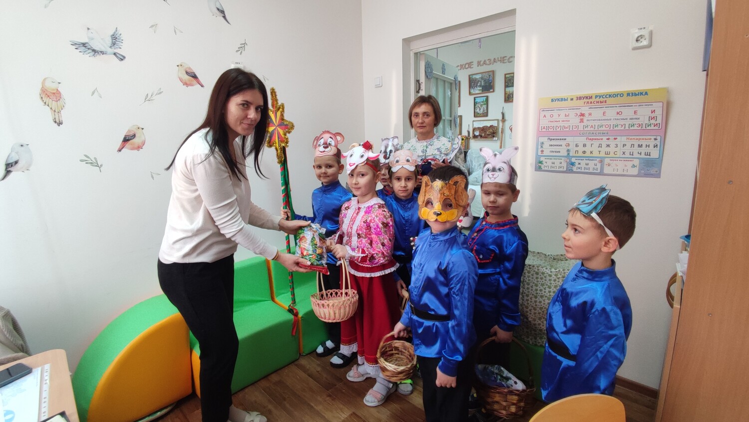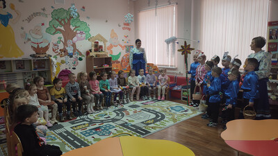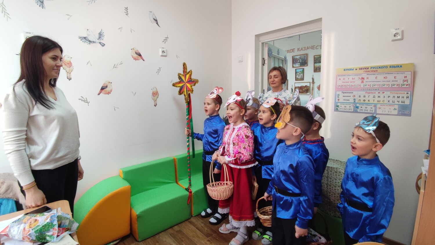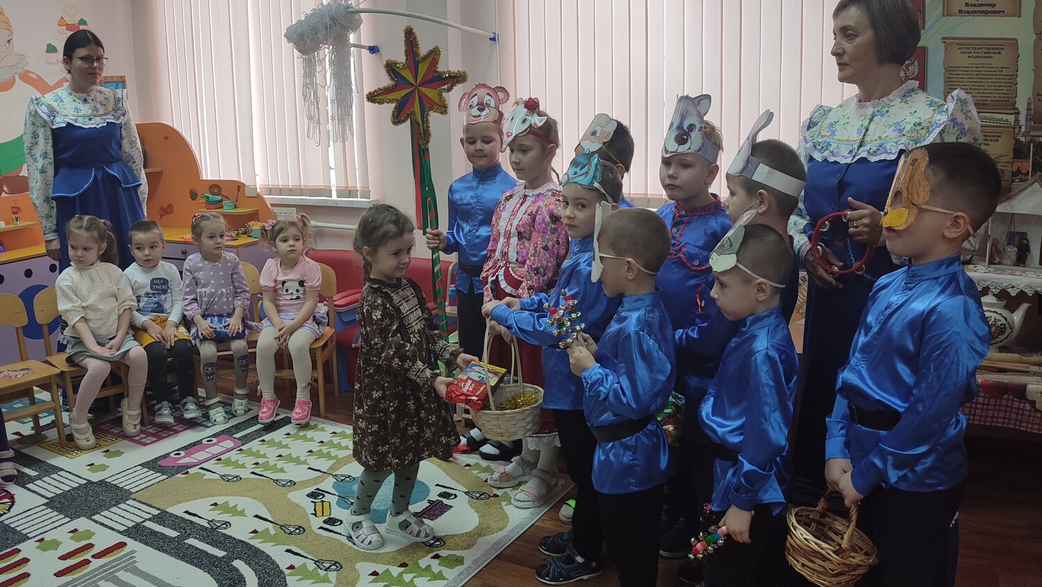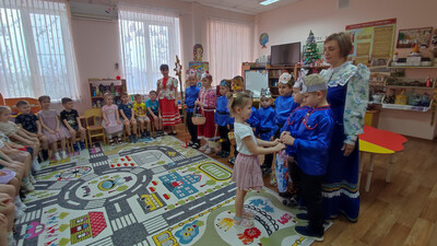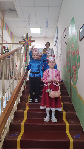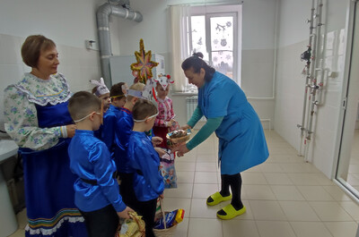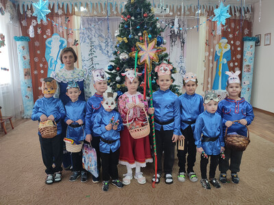 Ребята из подготовительной группы нарядились в красочные костюмы и отправились колядовать по детскому саду. Они пели задорные колядки, поздравляли воспитателей и сотрудников, желали всем здоровья, счастья и достатка. А в ответ получали сладкие подарки и тёплые слова благодарности!
