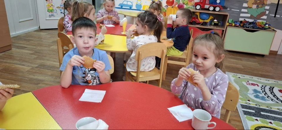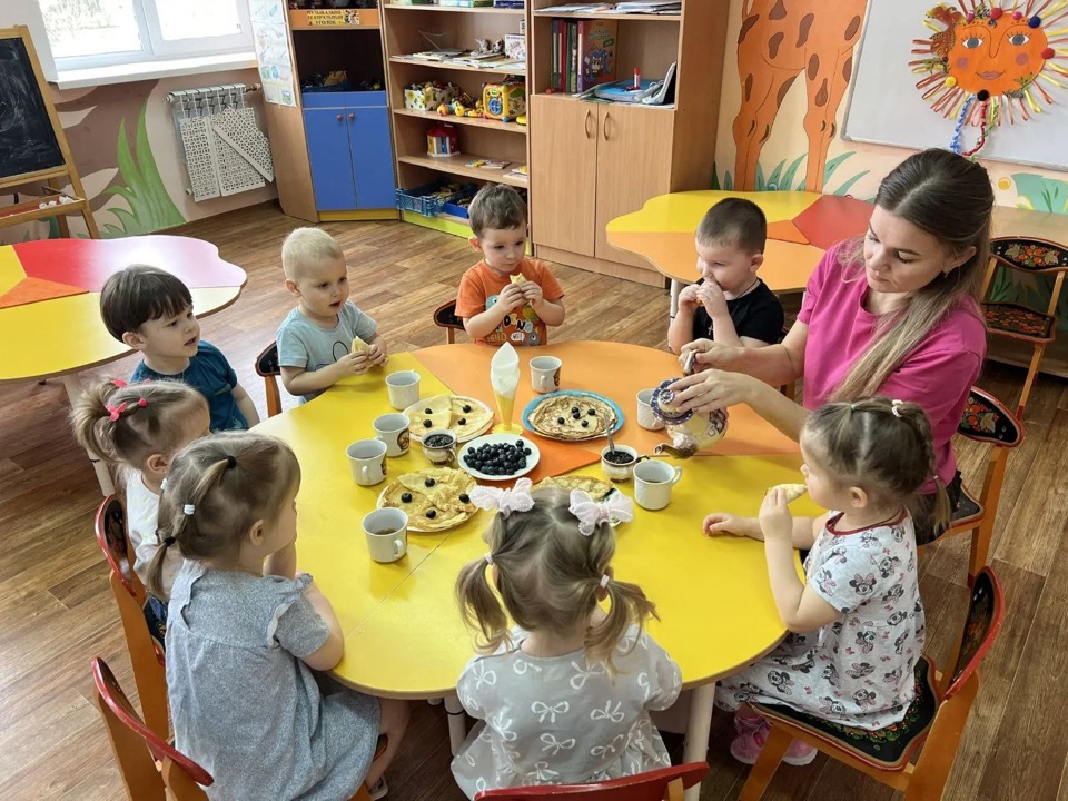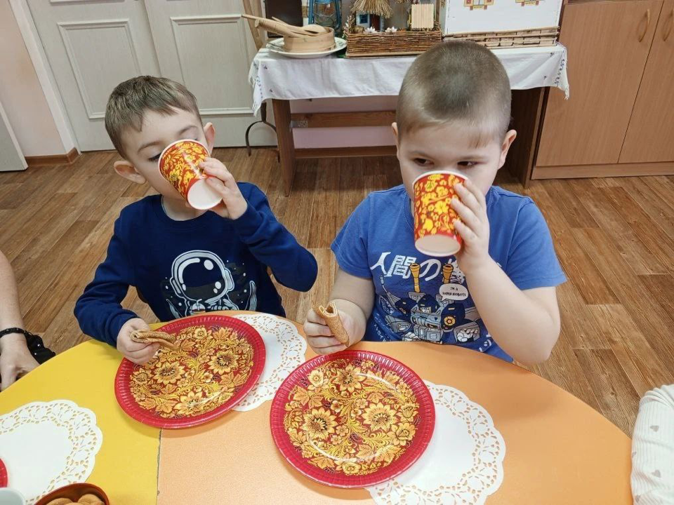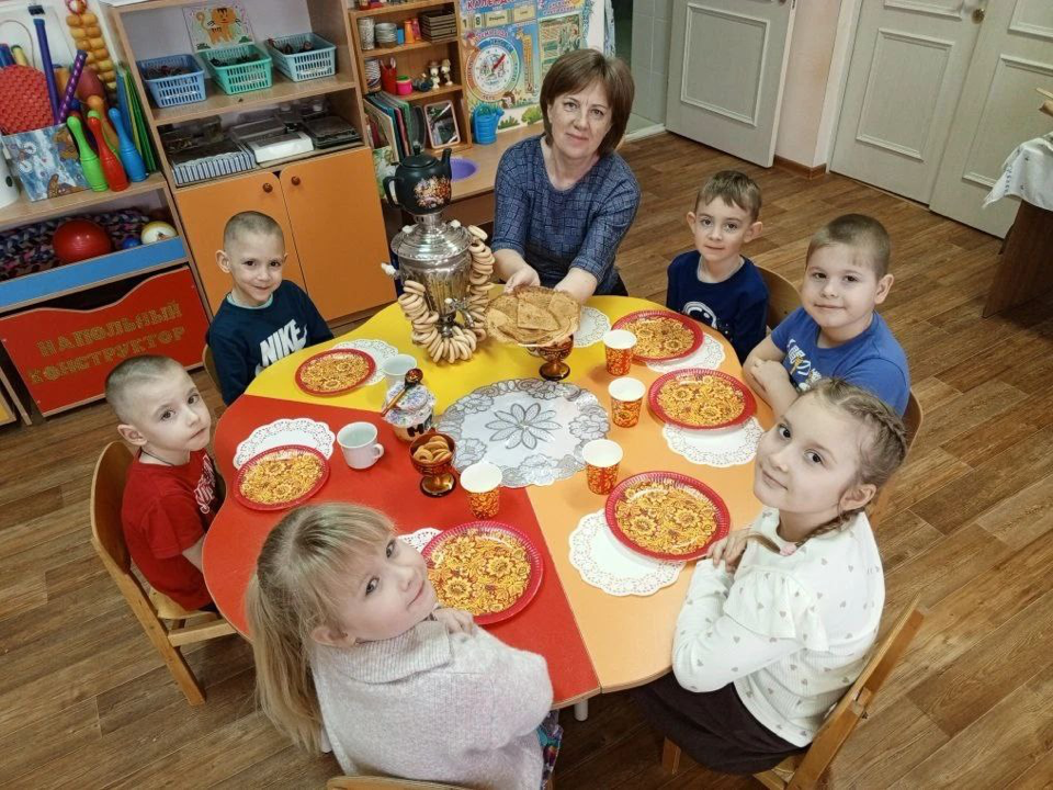 Во всех группах прошло тёплое чаепитие: дети с удовольствием угощались румяными блинами, пили чай и делились впечатлениями.