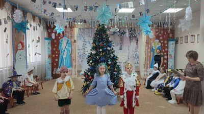 В подготовительной группе состоялся Новогодний утренник, на котором воспитанники вместе со Снегурочкой при помощи волшебного посоха нашли Дедушку Мороза и вернули из прошлого. Баба Яга помогла ребятам пройти через волшебный лес, сказочные герои указывали путь, Звездочет вернул огоньки на Елку и она засияла праздничными огнями. Ребята с восторгом встретили любимых героев и приняли участие в увлекательных приключениях, полных смеха и радости.