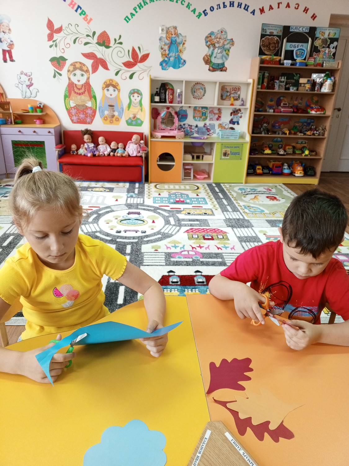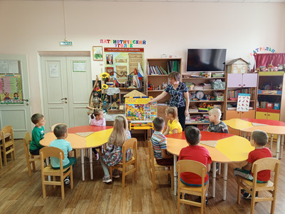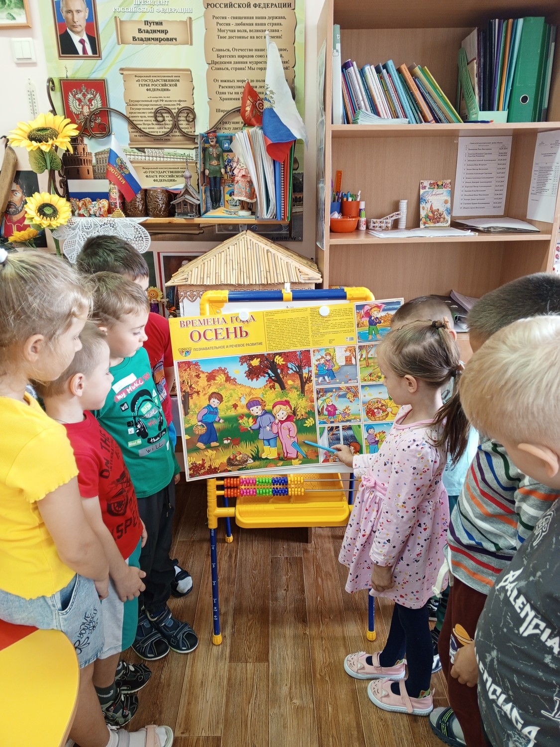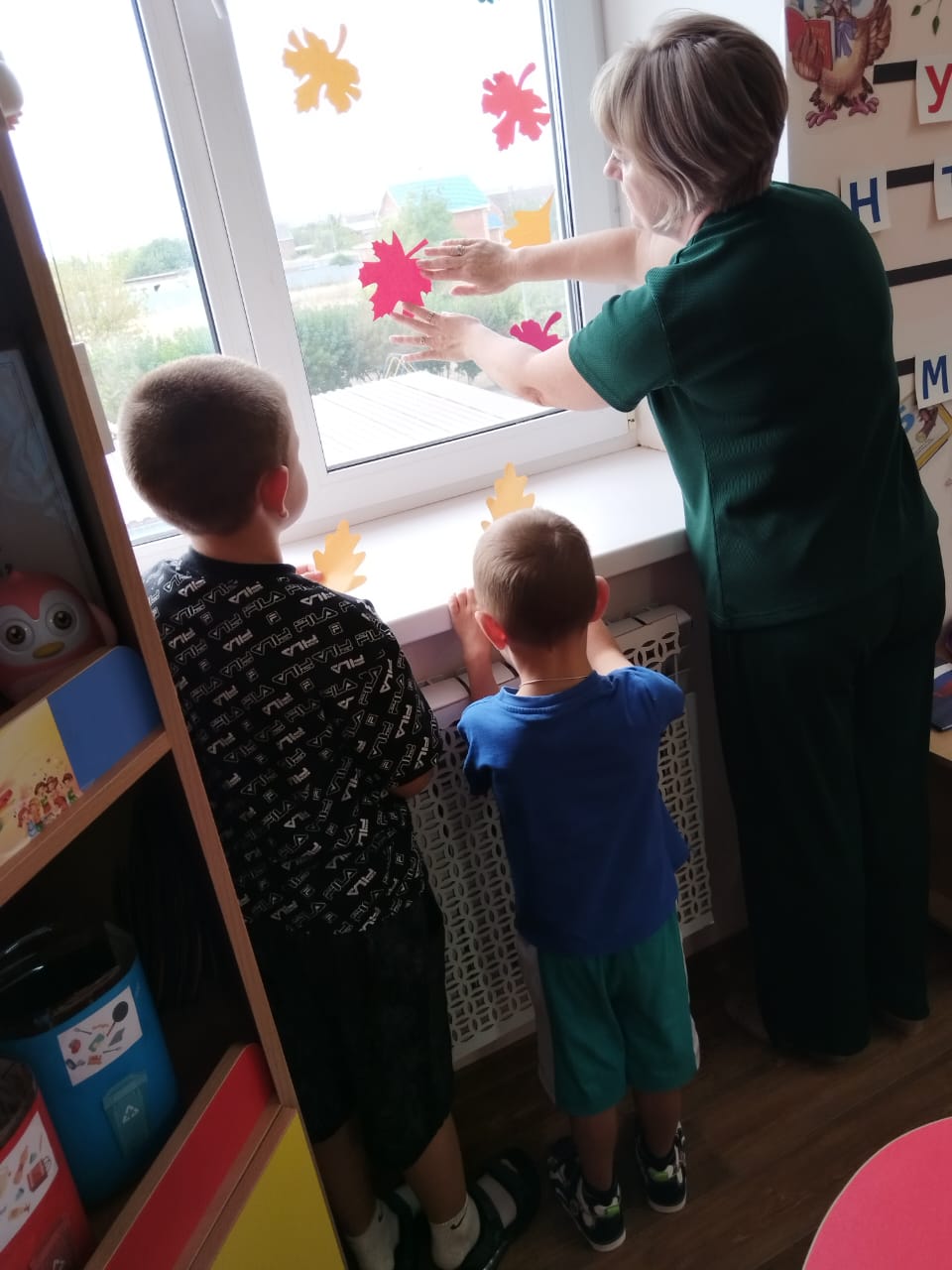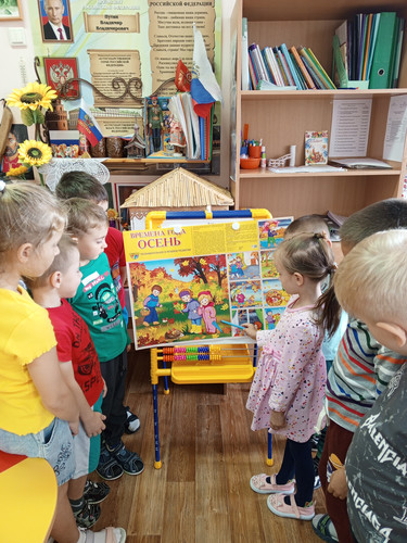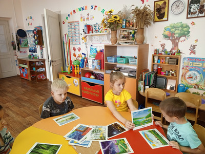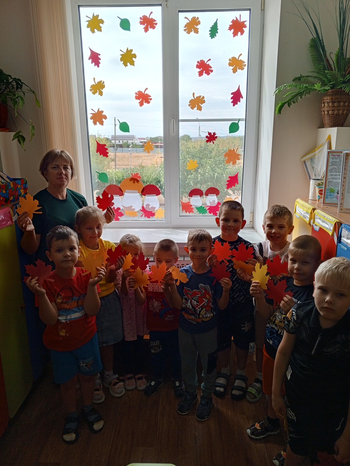 У природы наступила замечательная пора. После жаркого лета пришла прохладная осень. Солнышко все реже светит, закрывается тучами, чаще дуют холодные ветры и льют дожди. Дни заметно уменьшаются, вечером рано темнеет. Трава желтеет, цветы вянут, листья на деревьях и кустах меняют окраску и опадают. Животные готовят запасы на зиму. Люди собирают щедрый урожай. Природа готовится к зиме. Воспитанники подготовительной группы нашего детского сада тоже потрудились на славу. В ходе беседы ребята вспомнили и закрепили приметы осени. Как меняется природа в осенний период, какие осенние месяцы приходят к нам в гости. Как готовятся к зиме лесные обитатели. Как меняется жизнь людей с приходом осени. Вспомнили пословицы и поговорки на тему осени. Играли в дидактические игры "Когда это бывает" и "Времена года". Совместно с воспитателями выполнили заготовки и украсили групповую комнату. На окнах разноцветные листья закружились в волшебном карнавале. В детский сад пришла настоящая Осень.
