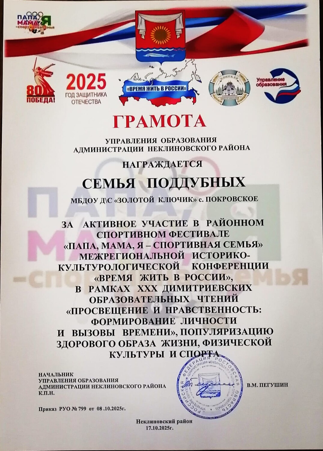 Мы гордимся участием семьи Поддубных в районном фестивале и желаем им дальнейших успехов и новых спортивных достижений. Их пример служит вдохновением для всех воспитанников детского сада и способствует укреплению семейных ценностей и здорового образа жизни.