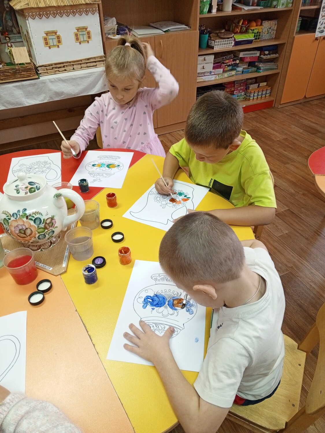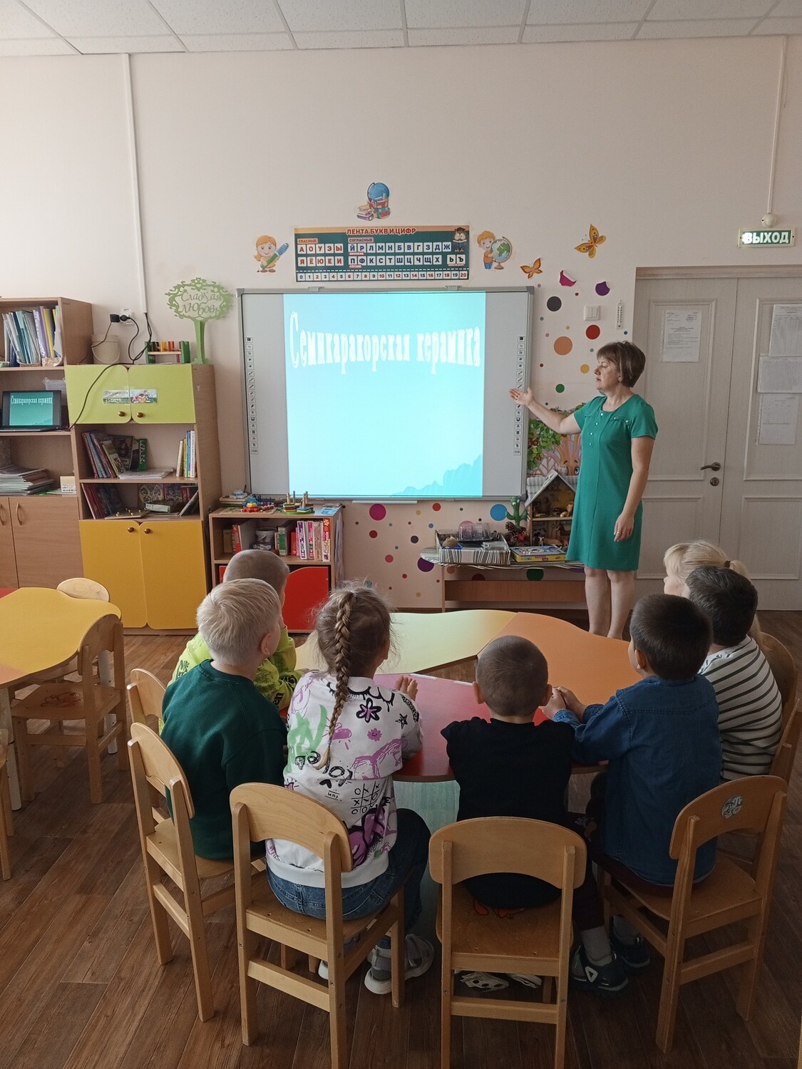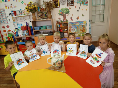 Воспитывать нравственно - эстетическое отношение к миру, любовь к Родине, ее истории и культуре важная задача дошкольных учреждений. В подготовительной группе нашего детского сада состоялось занятие по рисованию Элементов Семикаракорской росписи "Солнечные цветы". В начале занятия воспитанники просмотрели презентацию "Семикаракорская керамика", приняли участие в беседе "Город Мастеров" затем выполнили творческие работы. В ходе занятия ребята узнали много нового и интересного о народном декоративно - прикладном искусстве и Семикаракорской керамике.