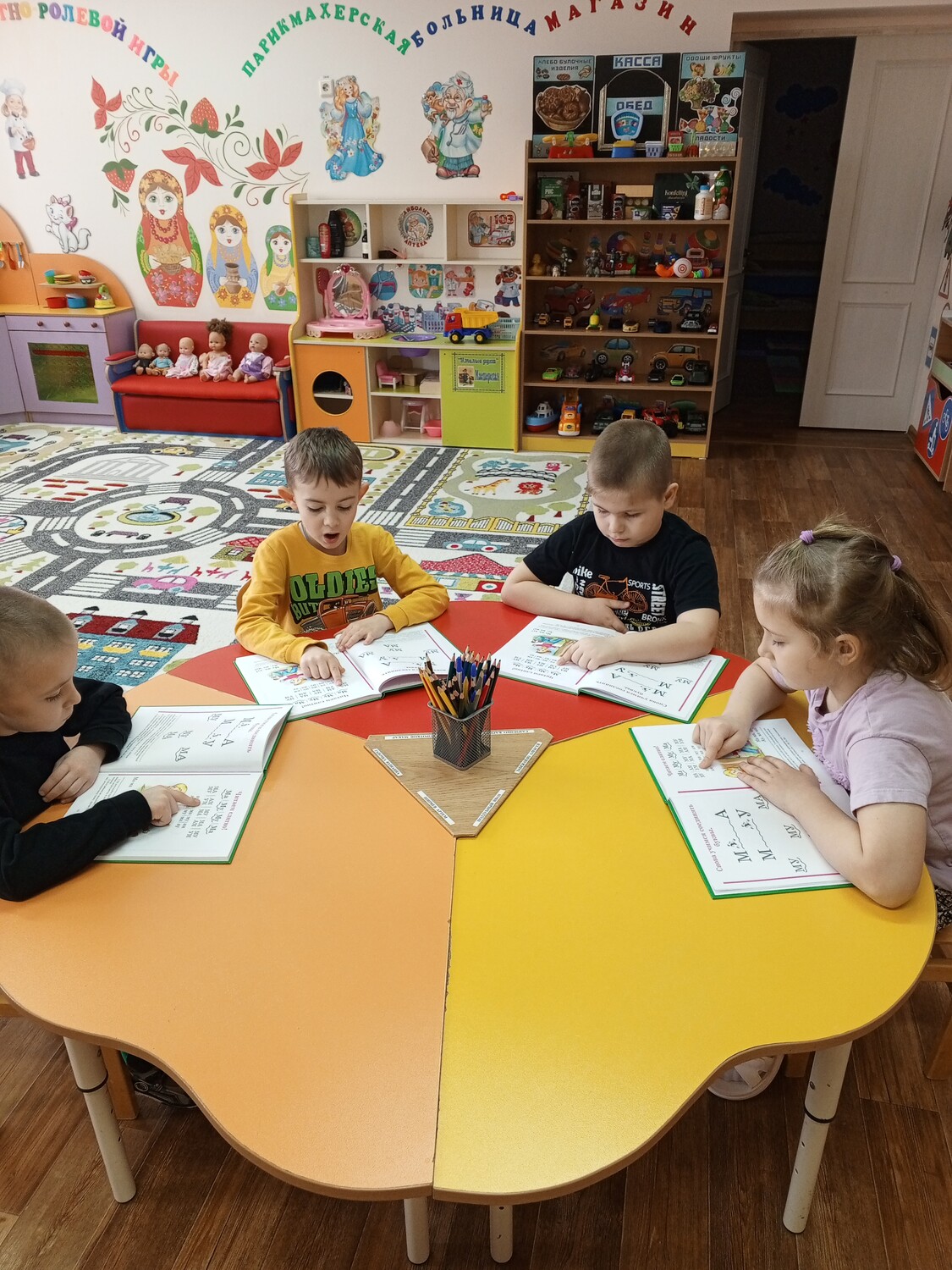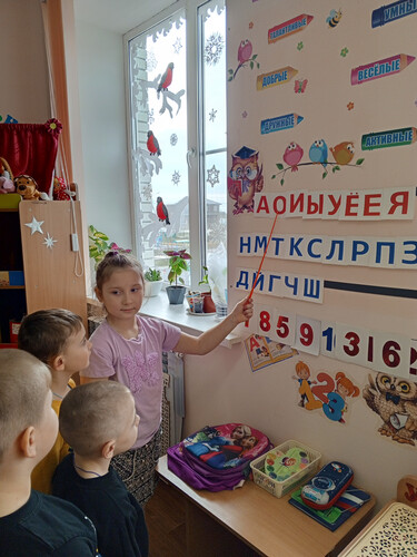 В подготовительной группе "Радуга" прошло тематическое занятие "Скоро в школу", целью которого было формирование представления о школе и положительного отношения к школьной жизни у старших дошкольников. Воспитатель Лебедева О. Г. рассказала воспитанникам, чем дети занимаются в школе и школьных принадлежностях. Ребята плодотворно работали с букварем и в прописях, отгадывали загадки, играли в дидактические и сюжетно-ролевые игры. В ходе занятия дети развивали грамматически правильную речь, мышление, внимание, память, аккуратность, дружелюбие и уважение, закрепили правила "школьной жизни". Главной задачей этого занятия стало снятие чувства тревоги и сомнения у дошкольников перед встречей со школой.