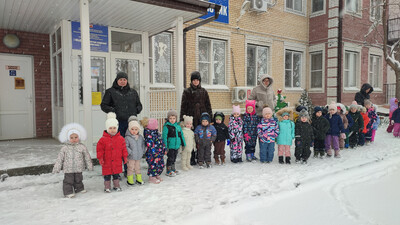 На прогулку все возрастные группы вышли на заснеженную площадку,  вооружившись  хорошим настроением. Ребята проявили невероятную изобретательность.